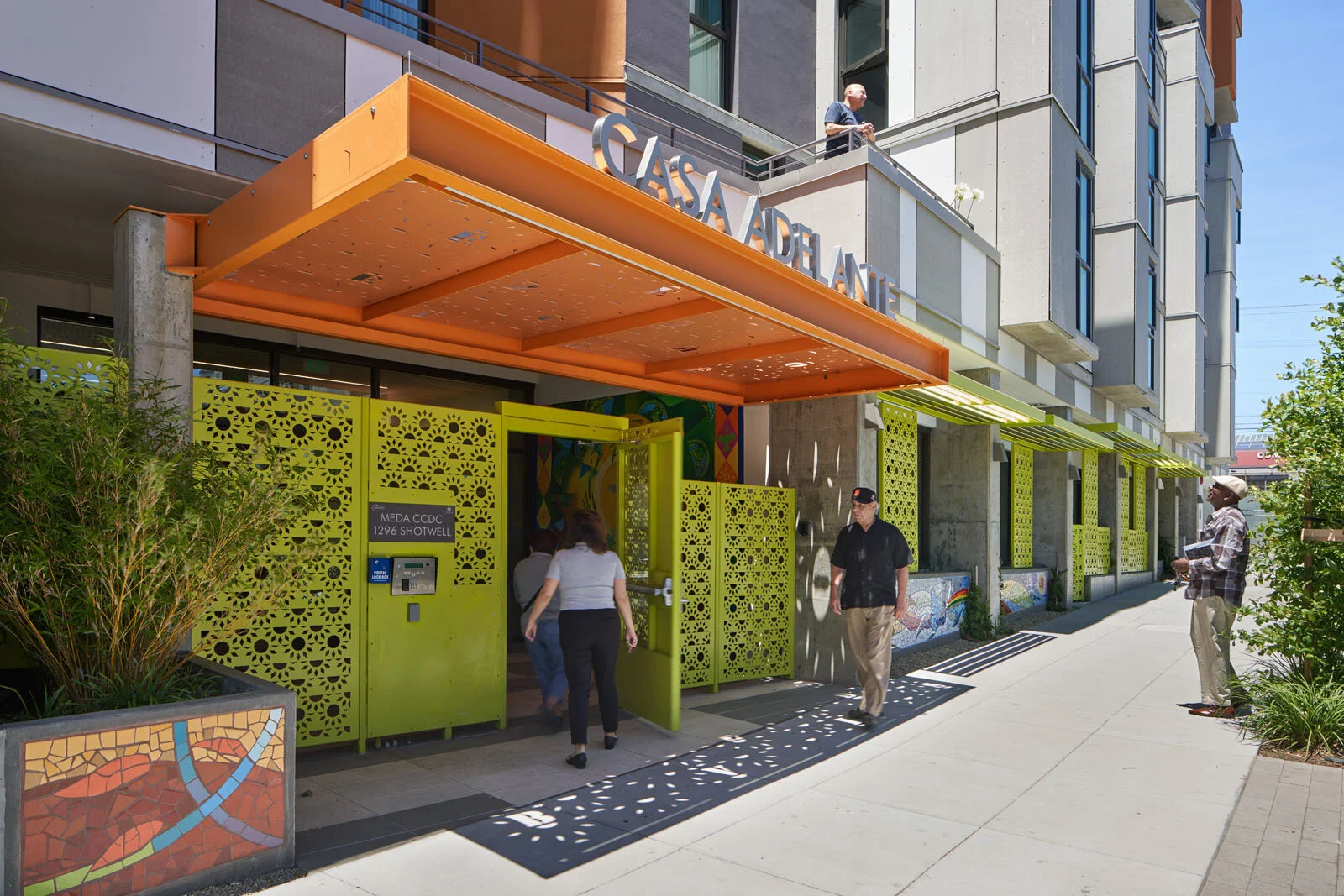 Casa Adelante is a seismically resilient, nine-story affordable housing project for low income seniors. The specially “tuned” reinforced-concrete building uses self-centering walls on a rocking mat foundation. Lead extrusion dampers within the foundation control the seismic response. The building has been evaluated to have zero days of downtime for repair after a major earthquake.